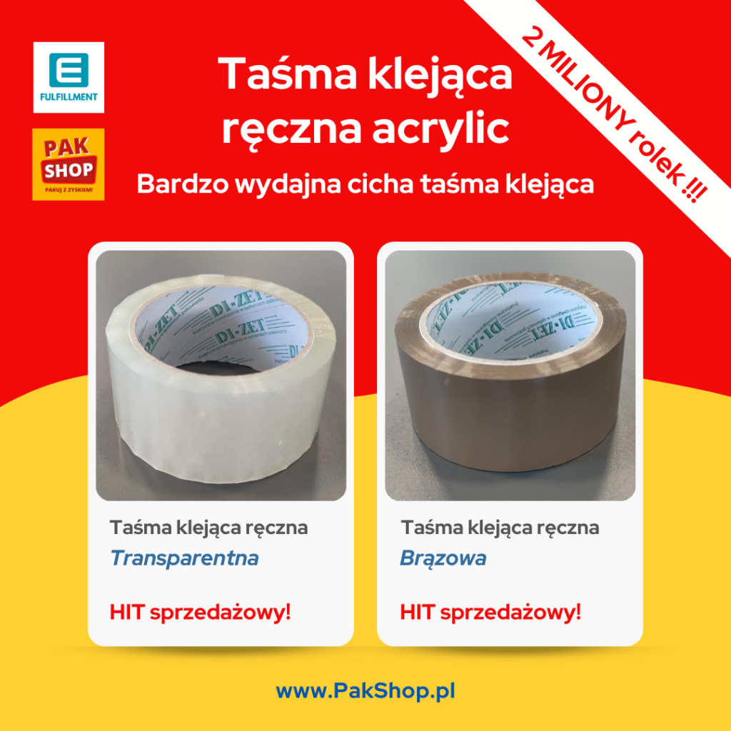 Bardzo wydajna taśma klejąca transparentna lub brązowa.